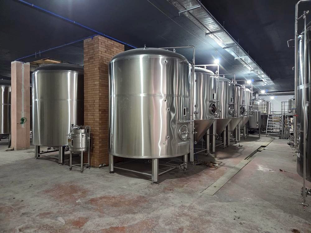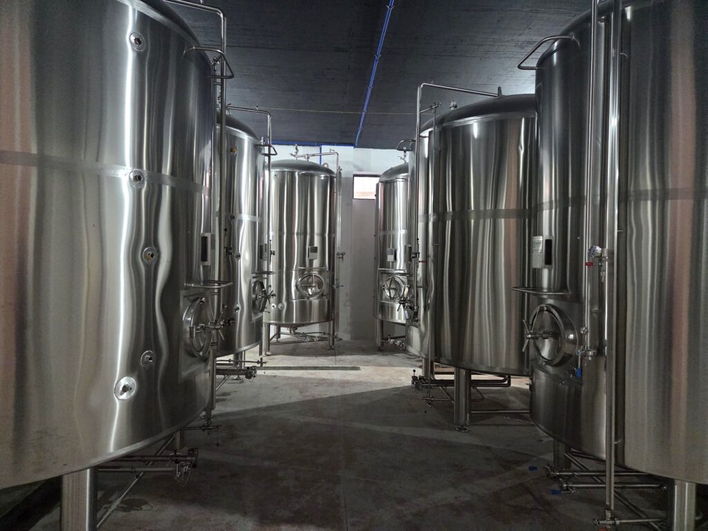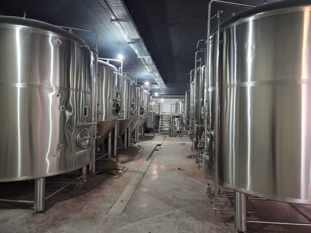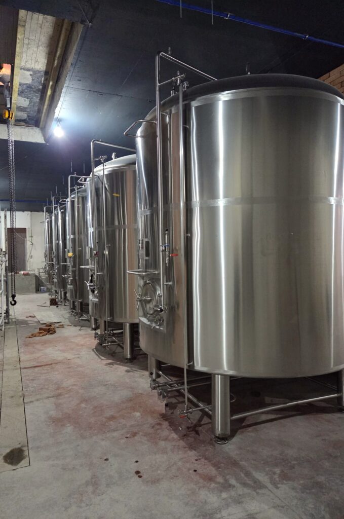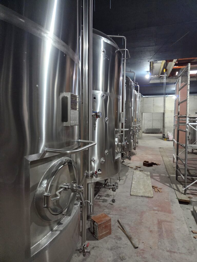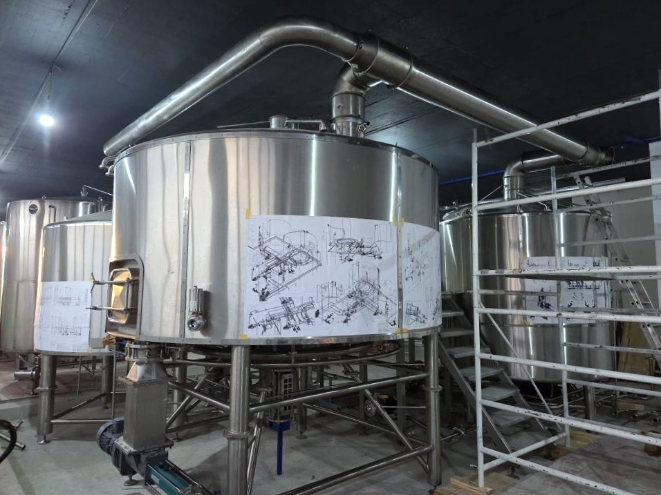Všechny nádoby včetně varny jsou již ustaveny na místě a nyní probíhá montáž jednotlivých potrubních tras.
